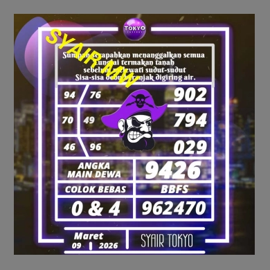 SYAIR PREDIKSI KELUARAN TOKYO, 9-Mar-2026