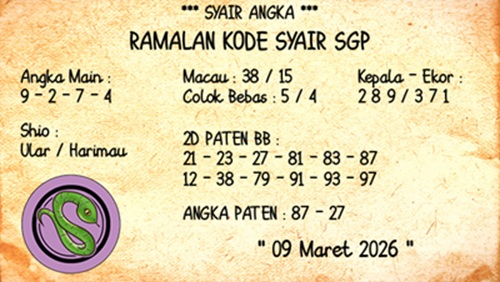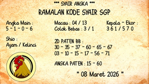 SYAIR PREDIKSI KELUARAN SGP, 8-Mar-2026